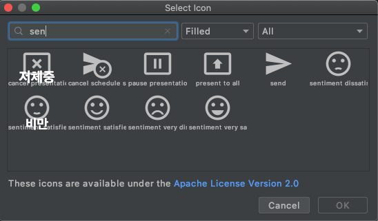 같은 방법으로 비만, 저체중일때 아이콘을 추가한다.