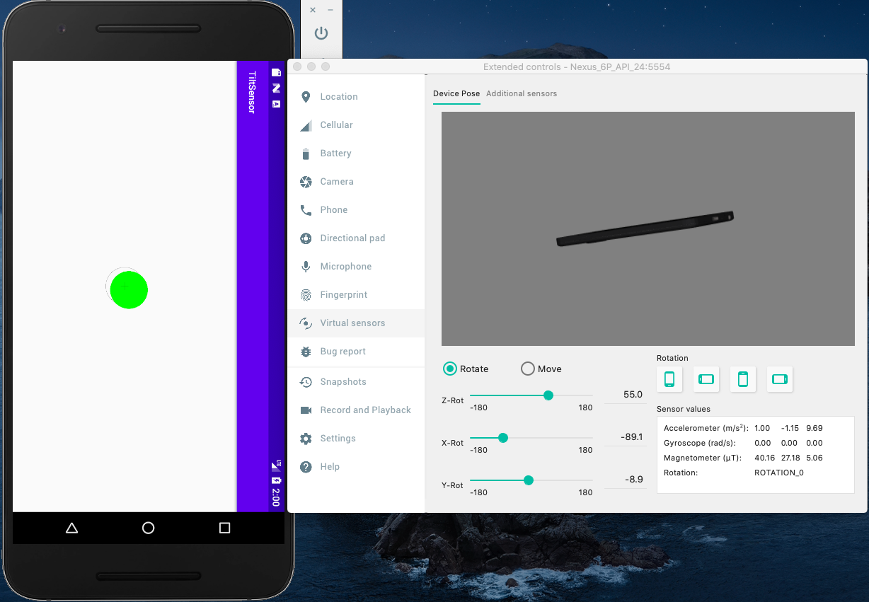 TYPE_ROTATION_VECTOR | 회전 센서 | 모션 감지, 회전 감지 |