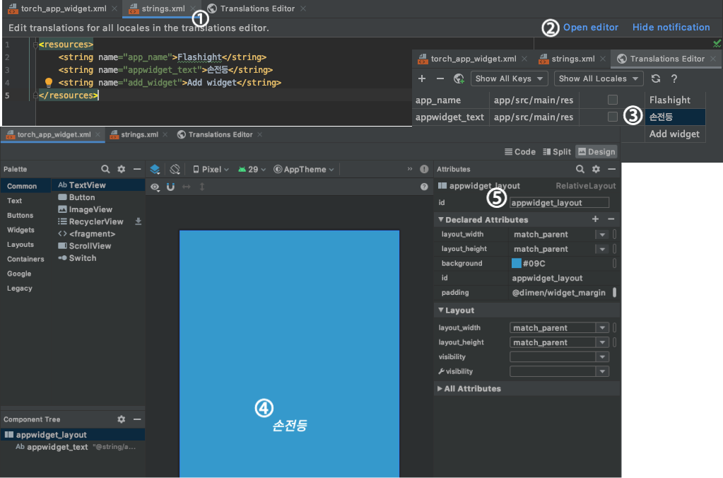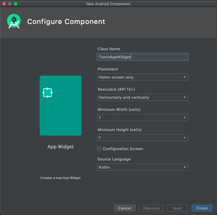 TourchAppWidget.kt 파일 내에 자동적으로 작성된 파일의 모습이다.